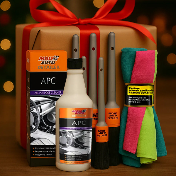 Božićni paket za detailing tijekom blagdanskog radzoblja sadrži APC univerzalni čistač 1l,set četki za detailing 5kom i set krpa od mikrofibre 4kom