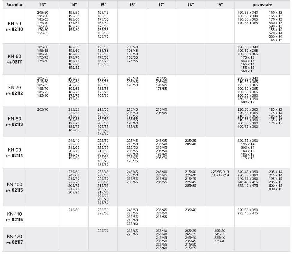 205/55R16, 205/60R16, 245/35R17, 235/40R17, 215/45R17, 225/35R18, 205/40R18